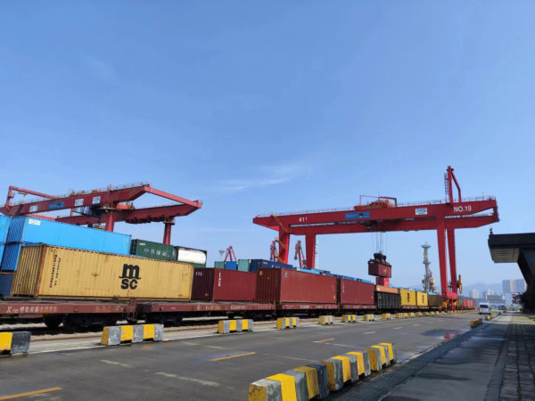 加大长三角外贸“新三样”、日化用品、家电、家具、电动工具、五金件等商品出口。新图增开金华东-磨憨的中老铁路跨境货运班列1列;增开海安—芦潮港X8925次、芦潮港—海安X8926次2列;金华东—穿山港81032/1、81034/3次2列、穿山港—金华东81012/1、81014/3次2列,源源不断地将江苏海安、盐城等地生产的光伏组件,浙江金华、永康等地生产的户外家具、五金件、小商品等运输至铁路中心站、港口货运站,提升上海港、宁波舟山港等两大沿海港口与内陆城市间海铁联运通道运输能力。