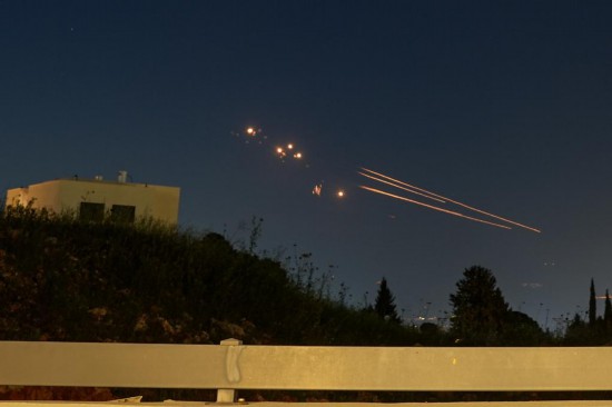 这张4月12日在以色列北部胡拉山谷拍摄的照片显示,以色列“铁穹”防空系统启动拦截从黎巴嫩发射的火箭弹。新华社发(阿亚尔·马戈林摄/基尼图片社)
