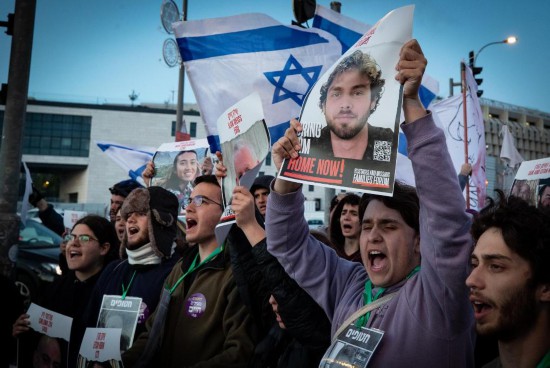 4月9日,以色列被扣押人员家属和民众在耶路撒冷举行游行集会,要求以色列政府立即在加沙地带实现停火并尽快与巴勒斯坦伊斯兰抵抗运动(哈马斯)达成协议,让被扣押的以色列人尽早获释。新华社记者陈君清摄
