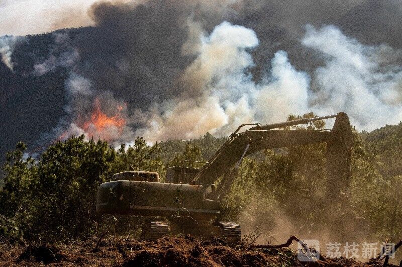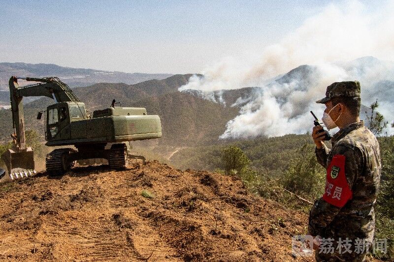 4月12日16时许,云南省昆明市晋宁区二街镇甸头村委会发生森林火情。武警第二机动总队某支队闻令而动,迅速组织官兵携带挖掘机、装载机等大型救援装备紧急驰援。
