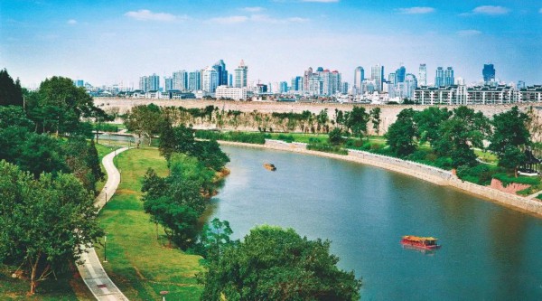 明城墙与秦淮河。图自:秦淮发布