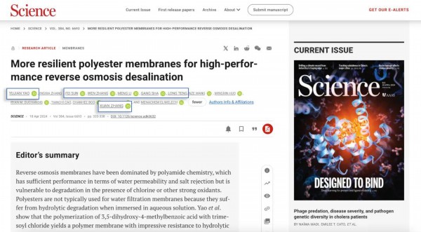 “聚酯膜可能能与最先进的聚酰胺反渗透膜竞争主流市场,这代表了自80年代Film Tec发明以来反渗透膜研究的里程碑前进。”