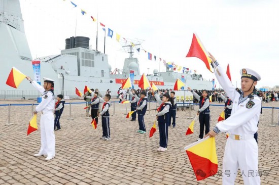 ▲孩子们祝人民海军生日快乐。刘再耀 摄