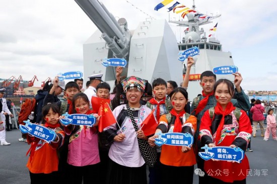 ▲湘西州花坦县排碧学校中小学师生参加青岛海军舰艇开放日。刘再耀 摄