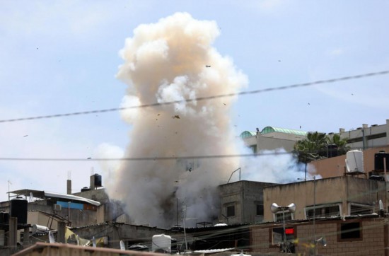 4月20日,在约旦河西岸城市图勒凯尔姆,冲突现场升起浓烟。新华社发(艾曼·诺巴尼摄)