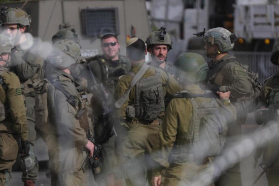 这是4月21日在约旦河西岸城市希伯伦冲突现场附近拍摄的以军士兵。据巴勒斯坦卫生部21日发表的声明,以军当天在约旦河西岸城市希伯伦同巴勒斯坦人发生冲突,开枪打死两名巴勒斯坦人。新华社发(马蒙·沃兹沃兹摄)