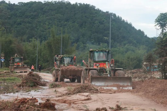 20日,受强降雨影响,韶关市多地出现内涝积水、人员受困、通信供电中断等情况,武江区江湾镇发生多处山体滑坡。第74集团军某旅受领任务后,迅速抽组官兵,出动各型车辆装备紧急驰援。因山体滑坡导致道路塌方、桥梁受损,官兵经过24小时连续抢修,目前已疏通道路27公里,打通了前往灾区的道路。截至22日18时,该旅共派出救援官兵300余名,出动救援车辆和工程机械50余台次。