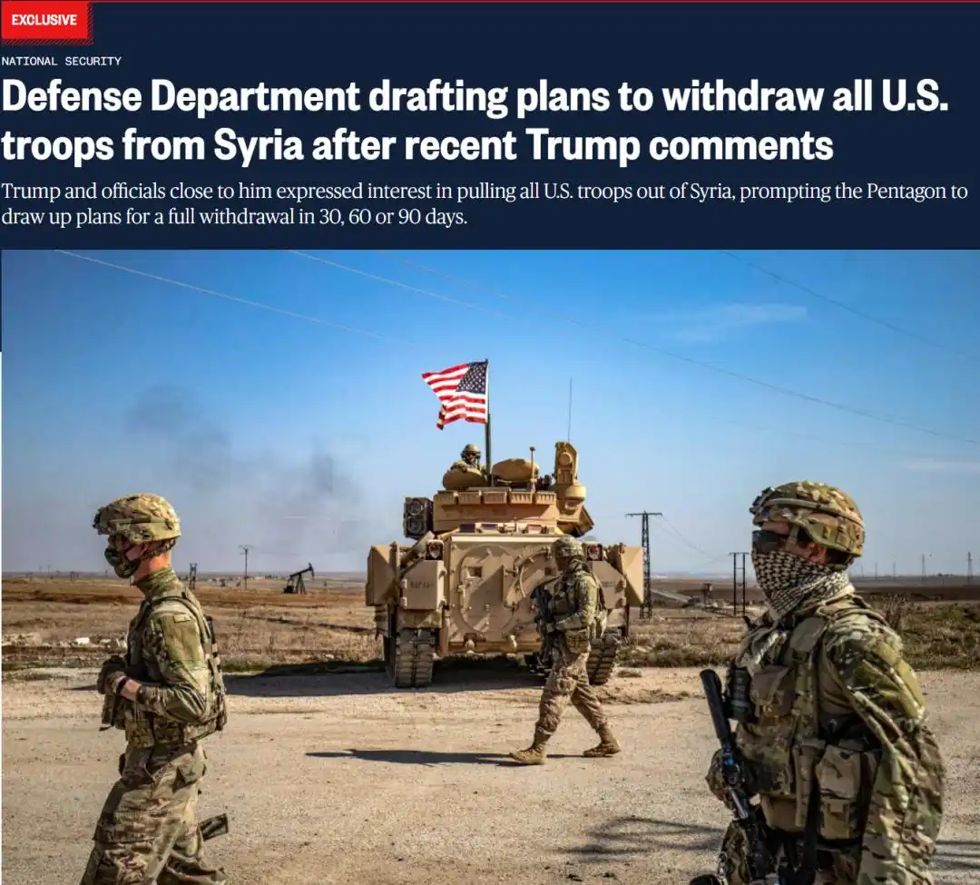 美国全国广播公司援引内部人士消息报道称,美国国防部正计划将美军从叙利亚完全撤出。这个消息是真是假?