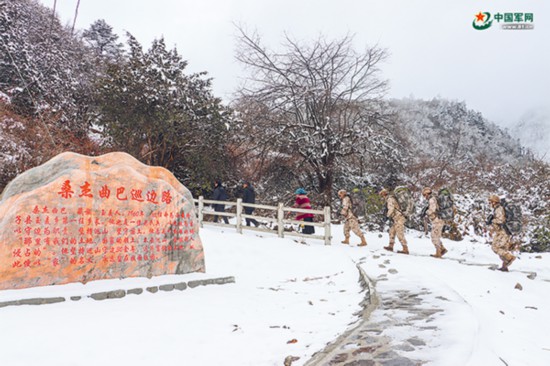 西藏军区某边防连官兵与玉麦乡群众重走桑杰曲巴巡边路。吴奇峰 摄