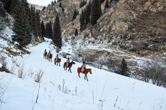 近日,陆军某边防团官兵骑上军马,执行边境巡逻任务。走,跟随官兵们一起踏雪巡边关。
