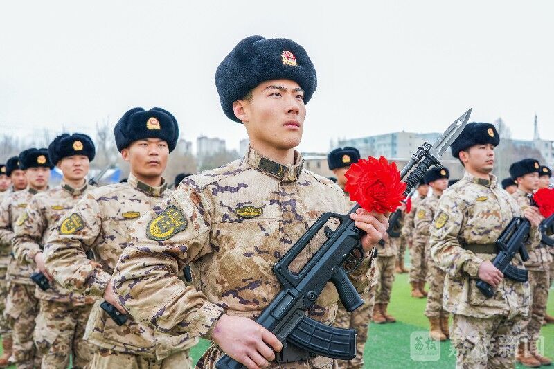 近日,武警新疆总队某支队隆重举行授枪仪式,新兵们整齐列队,身姿挺拔、精神抖擞地迎接这一神圣时刻。