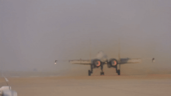 夜幕低垂,部队转入夜间训练。数架战机喷着淡蓝色尾焰,冲破夜幕升空。