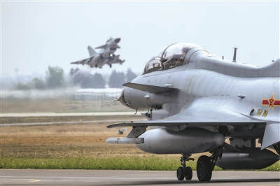 近日,南部战区空军航空兵某旅开展飞行训练。图为战机接续起飞。肖 锐摄