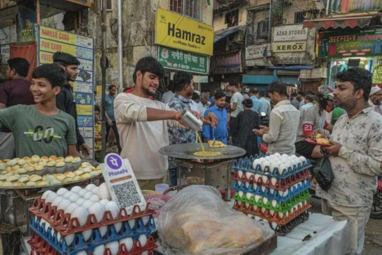 印度孟买的小吃摊摆出二维码,以便顾客用手机支付 图源:中国青年报援引《纽约时报》