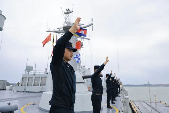 中柬“金龙-2025”联演结束仪式后,中方陆上参演部队机动至柬埔寨云壤港,与海上参演部队完成集结和装备物资装载,于5月31日上午搭乘海军长白山舰从云壤港出发,回撤归建,柬军方代表到码头送行。同日,空中参演部队从柬埔寨金边某机场起飞转场,回国归建。