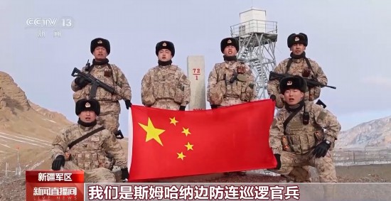 巡逻官兵:我们是斯姆哈纳边防连巡逻官兵,我们在海拔3929米的执勤点位,祝伟大祖国繁荣昌盛,祝全国人民元旦快乐。边防有我们守护,请祖国和人民放心。
