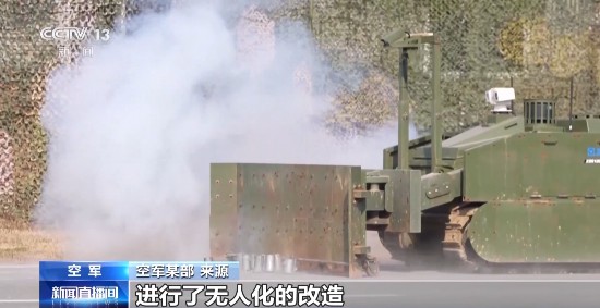 演练模拟某场站遭“敌”袭击,造成人员伤亡和设施毁伤。官兵迅速展开毁伤勘察作业,根据无人机回传画面实时评估机场毁伤态势。随后,无人推扫车、无人机等新型设备快速出动,对地面及地下存留的未爆弹进行排除。