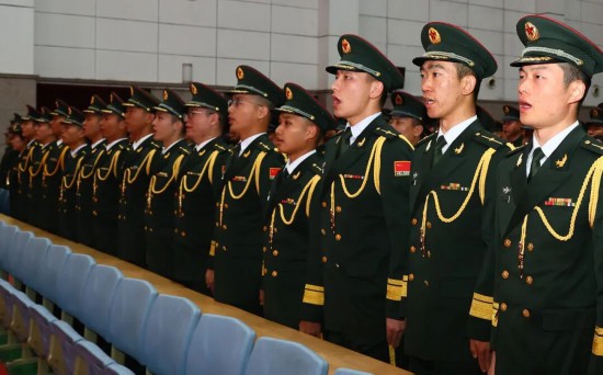 礼堂内军歌嘹亮