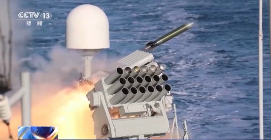 主炮对海射击刚刚结束,编队临机导调,在该海域训练的开封舰模拟对编队进行导弹攻击,齐齐哈尔舰立即发射干扰弹进行防御。