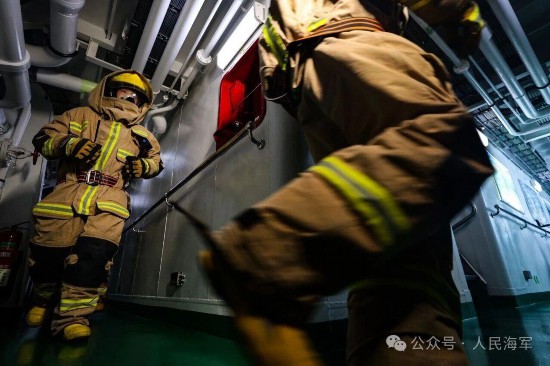 △济南舰组织损害管制训练