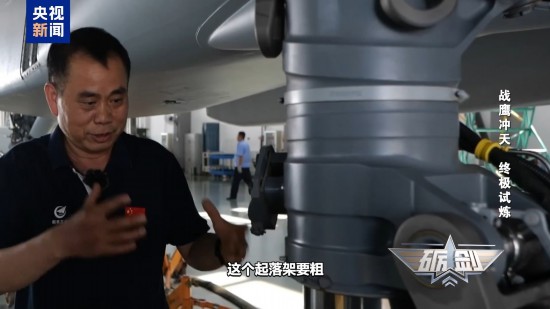 空军特级飞行员、歼-15首飞试飞员 李国恩:因为飞机的姿态是这样的,等到尾钩一挂上,前起落架就会砸到甲板上。一是对它强度的考验,二是前起落架吸能也是一个重要的技术难点。