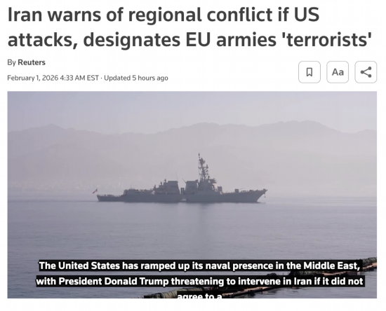 另一方面,伊朗国内局势与外部压力相互叠加,最高领袖哈梅内伊2月1日首次用“地区战争”做公开警示,称如果美国对伊朗发动攻击,将会引发地区战争,这无疑是把风险上限直接抬高,既是对美方军事选项的吓阻,也是向地区国家和能源市场发出的信号——任何误判都可能造成难以估量的影响,甚至连霍尔木兹海峡是否出现实弹演训、是否影响航运预期,都能迅速成为舆情与市场的神经末梢。