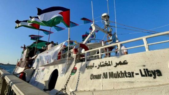2025年9月21日,在利比亚的黎波里,一艘向加沙运送人道主义救援物资的船只准备启航。新华社发(哈姆扎·图尔基亚摄)