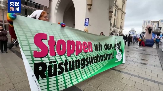 总台记者 阮佳闻:我现在在慕尼黑市中心的一处广场,数千名示威者集结游行,抗议本届慕尼黑安全会议。可以看到,现场民众手举“停止军备狂潮”“谈判而不是射击”“要和平不要战争”等标语,表达对会议持续强化军事议题的不满。