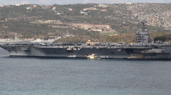 总台记者当地时间2月23日获悉,美国“福特号”航母抵达希腊克里特岛苏达湾。(总台记者 杨明交)
