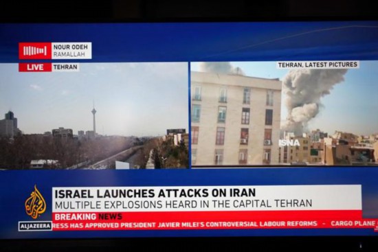 这张2月28日拍摄的半岛电视台电视直播画面显示的是以色列对伊朗发动袭击。新华社记者 张浩波 摄