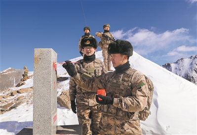 近日,陆军某部别迭里边防连官兵执行巡逻任务。