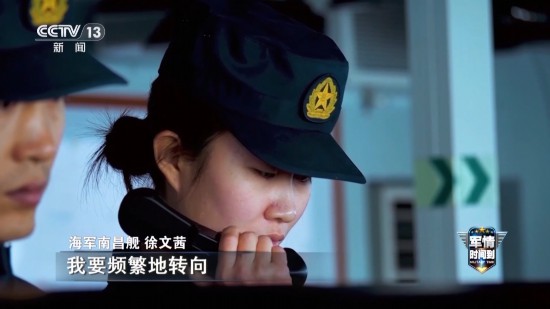 海军南昌舰 徐文茜:当时能听到指挥员不停地下舵令,我要频繁地转向,转变我们本舰的航向,去阻止它穿越我们编队。我不可能让你有什么可乘之机从我编队穿过去。