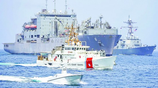前美国海军军官、军事分析师卡尔·舒斯特表示,这也意味着直升机或攻击机必须在附近盘旋,随时准备迎击空中无人机或海上无人快艇;同时空中预警机和侦察无人机必须深入伊朗内陆地区进行搜索,以提前发现可能以油轮或军舰为目标的导弹发射。