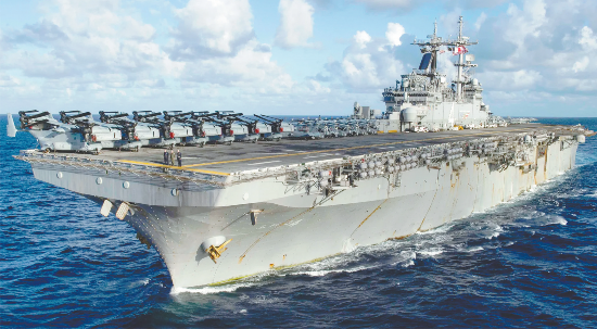 据介绍,两栖戒备群是美国海军用于干预全球事务的快速反应部队,通常由一艘两栖攻击舰和两艘大型登陆舰组成,它们会固定搭载2000名水兵和隶属海军陆战队远征部队的约2200名海军陆战队员。不同于美国陆军部队渡海作战需要较长时间的装备集结、登船和准备,两栖戒备群预先搭载有海军陆战队远征部队的配套装备和后勤物资,可以快速出动,执行从配合F-35战斗机作战,到非战斗人员撤离行动和灾难救援等各种任务。