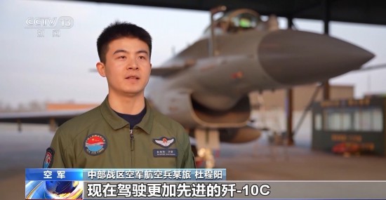 中部战区空军航空兵某旅杜程阳:飞行学员时,我们驾驶歼-10A,现在驾驶更加先进的歼-10C,这不仅是从A到C的机型跨越,更是体系作战能力加快生成的重要体现。作为英雄传人,能够驾驶先进战机守卫祖国蓝天,使命光荣、责任重大,我们必须地面苦练、空中精飞,努力提升空战技能,向着新时代的强军目标高飞远航。