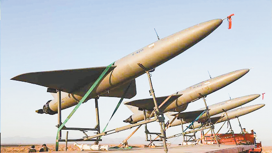 “阿拉什-2”无人机于2022年首次公开亮相,其原型机早在2020年就出现在伊朗的军事演习中。它属于大型螺旋桨驱动的自杀式无人机,除了航程更远之外,它还可以携带150公斤级的战斗部,毁伤力可与俄罗斯Kh-101远程巡航导弹相媲美,而成本仅为后者的1/10左右。伊朗称,该无人机结合了精确制导模块和改进的自主导航系统,使其能在飞行过程中重新锁定目标。“阿拉什-2”无人机弥合了伊朗战术无人机和战略打击能力之间的差距,提供了一种远程、相对低成本的武器,支持非对称威慑和纵深打击任务。