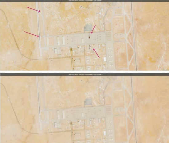 当地时间3月30日,伊朗方面发布卫星对比图,显示对沙特苏丹王子空军基地的美军相关设施的打击情况。伊朗称,一架加油机和一架预警机以及部分建筑物被击毁。
