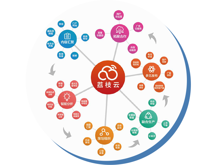 荔枝云平台是以江苏省广电总台为主导,按照媒体融合的创新理念,举全台之力,通过台内新闻部门、新媒体部门、电视频道、广播频率、技术部门等多部门联合探讨调研的业务需求,分析总结广播电视和新媒体业务规律,研究最先进技术发展,历经5年多时间规划建设,适应融合媒体多种类型业务发展的平台。