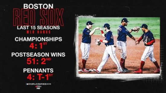 这是红袜自从2013年之后首次重返世界大赛,两次均成功登顶。最近15年来四次杀进世界大赛,全都夺冠,在此期间参加世界大赛的次数和夺冠次数都是全联盟最多。15年间红袜赢下51场季后赛,全联盟第二多。